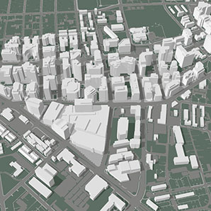 We have models available for many major US cities and metropolitan areas. All models feature separate layers for buildings, roof detail, roadbed, land, blocks, water, green spaces, railways and more. They can be imported in most 3D software packages.